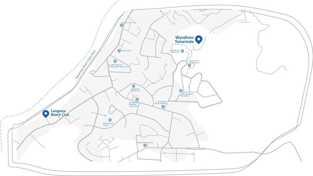 We're located in Tamarindo, one of the most renowned areas of Costa Rica's northern Pacific. From here, you'll enjoy ocean views at all times, direct access to nearby beaches, and quick connections to the town center, the Langosta Beach Club, and other local experiences. Getting there is easy; enjoying it is even easier.
